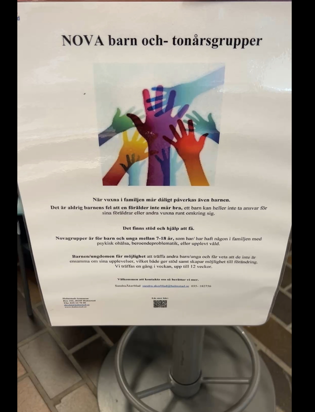 För den som behöver stöd och hjälp finns till exempel Novas samtalsgrupper för ungdomar som på något sätt utsätts för våld eller missbruk i sin närmiljö.