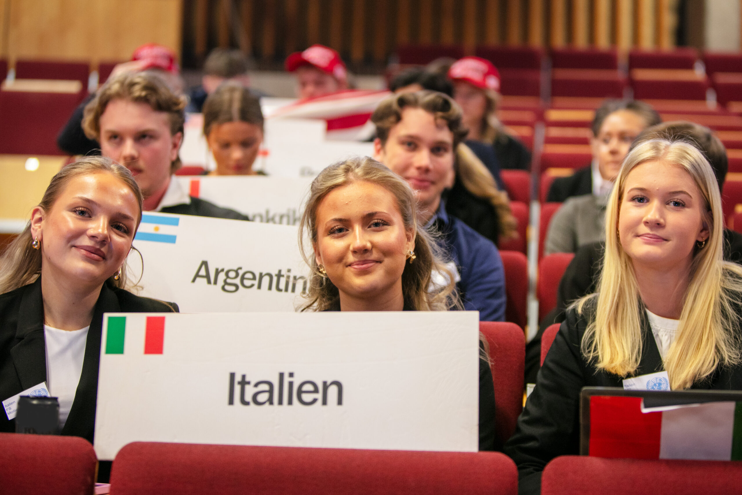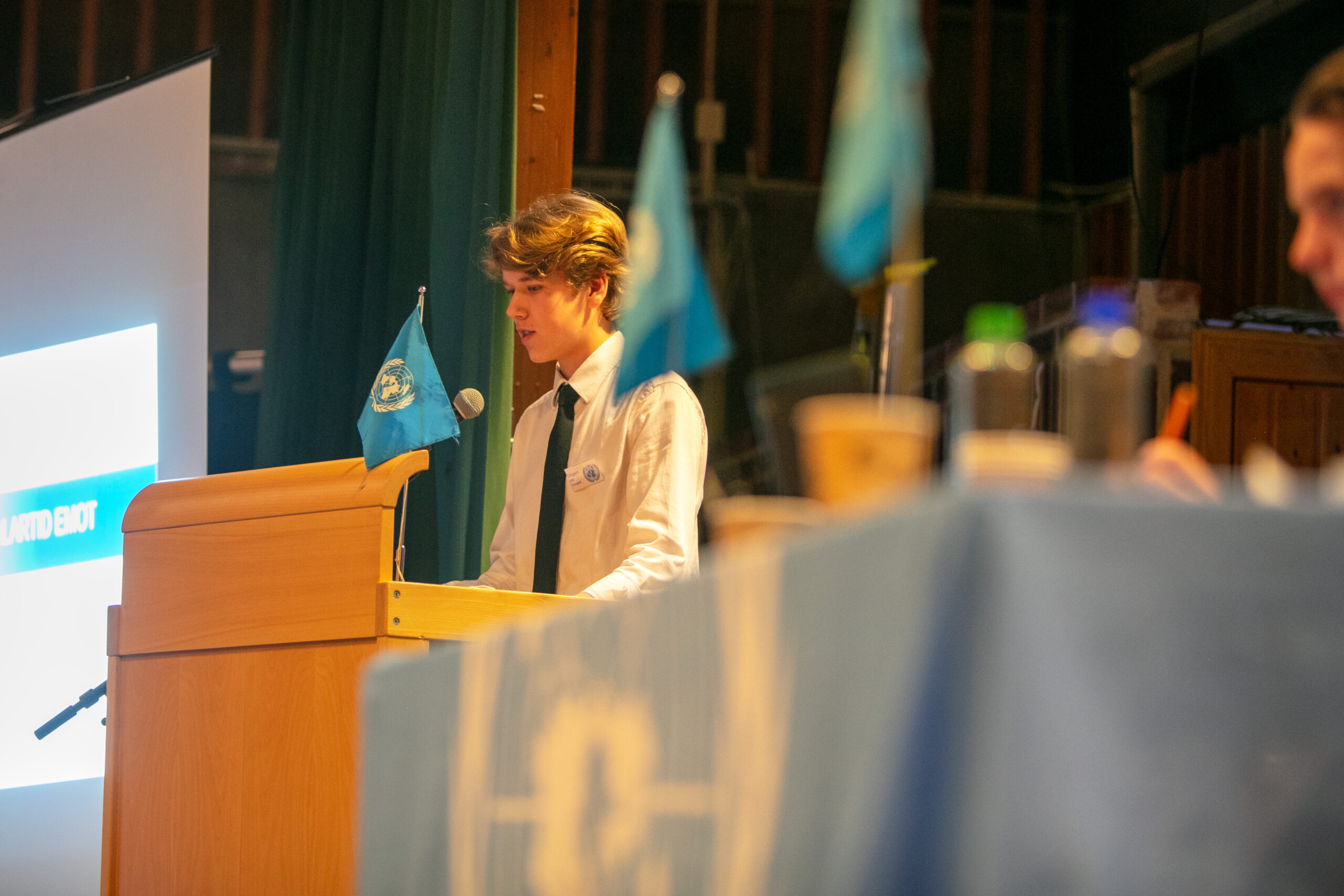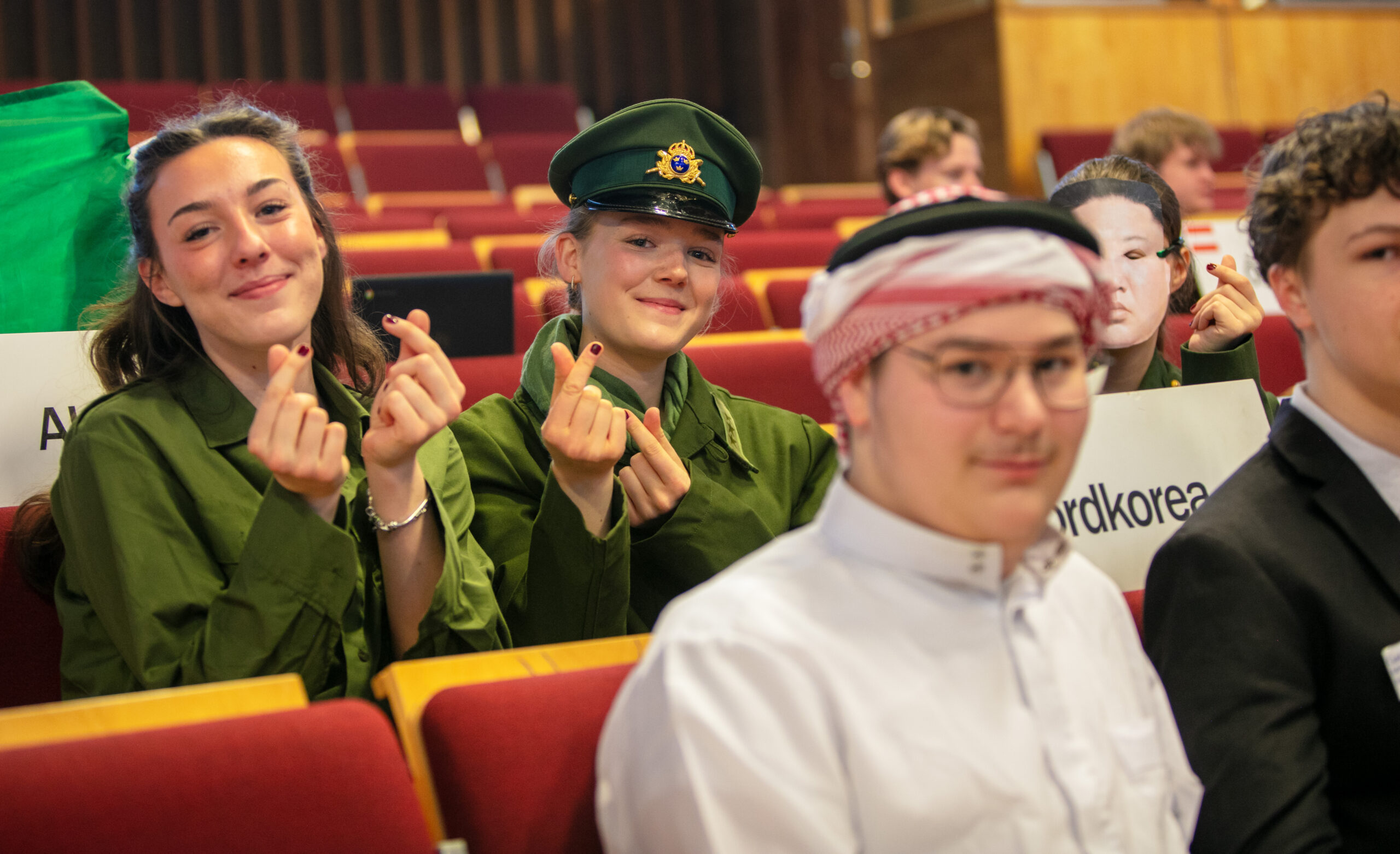 Efter det glädjefulla uppropet blir det mer allvar och FN-delegaterna visar med tal, ifrågasättanden och synpunkter sina kunskaper om omvärlden. I fem veckor har de i ämnena svenska, internationella relationer, retorik och samhällskunskap förberett sig genom att dels få klarhet i var landet de representerar står i viktiga frågor, men också läsa in sig på vad andra länder har för åsikter. Allt för att vara beredda på frågor och ”påhopp” från andra delegater.