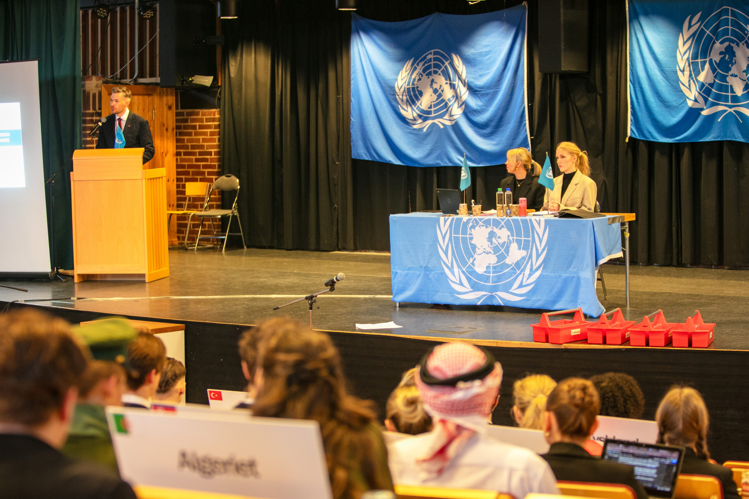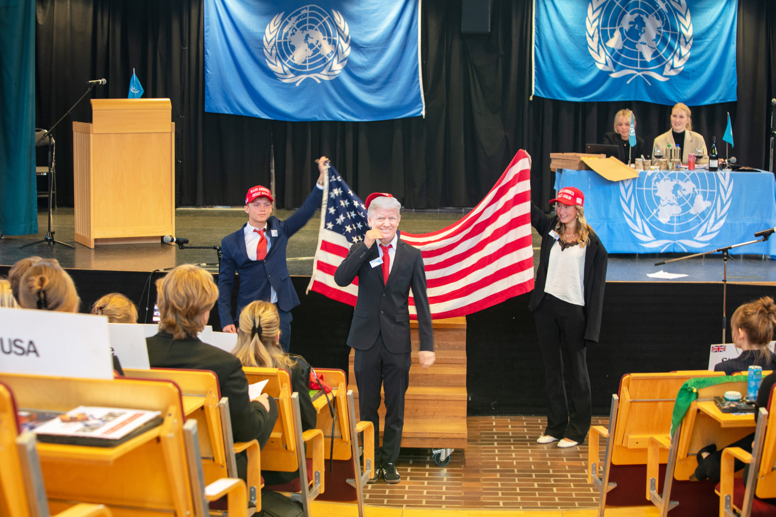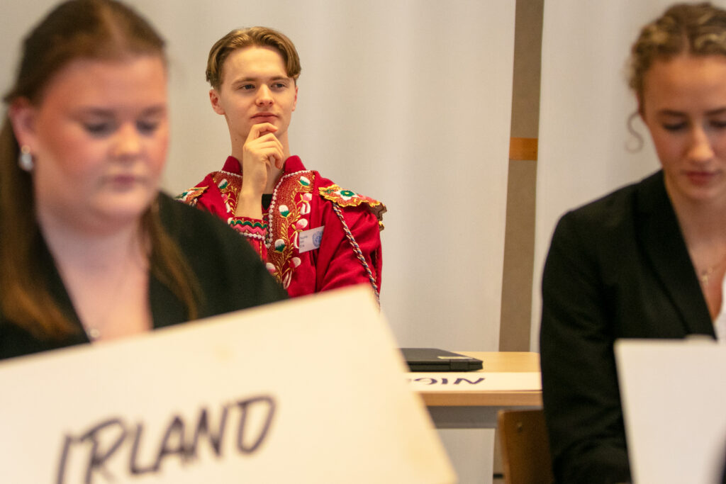 Efter det glädjefulla uppropet blir det mer allvar och FN-delegaterna visar med tal, ifrågasättanden och synpunkter sina kunskaper om omvärlden. I fem veckor har de i ämnena svenska, internationella relationer, retorik och samhällskunskap förberett sig genom att dels få klarhet i var landet de representerar står i viktiga frågor, men också läsa in sig på vad andra länder har för åsikter. Allt för att vara beredda på frågor och ”påhopp” från andra delegater.