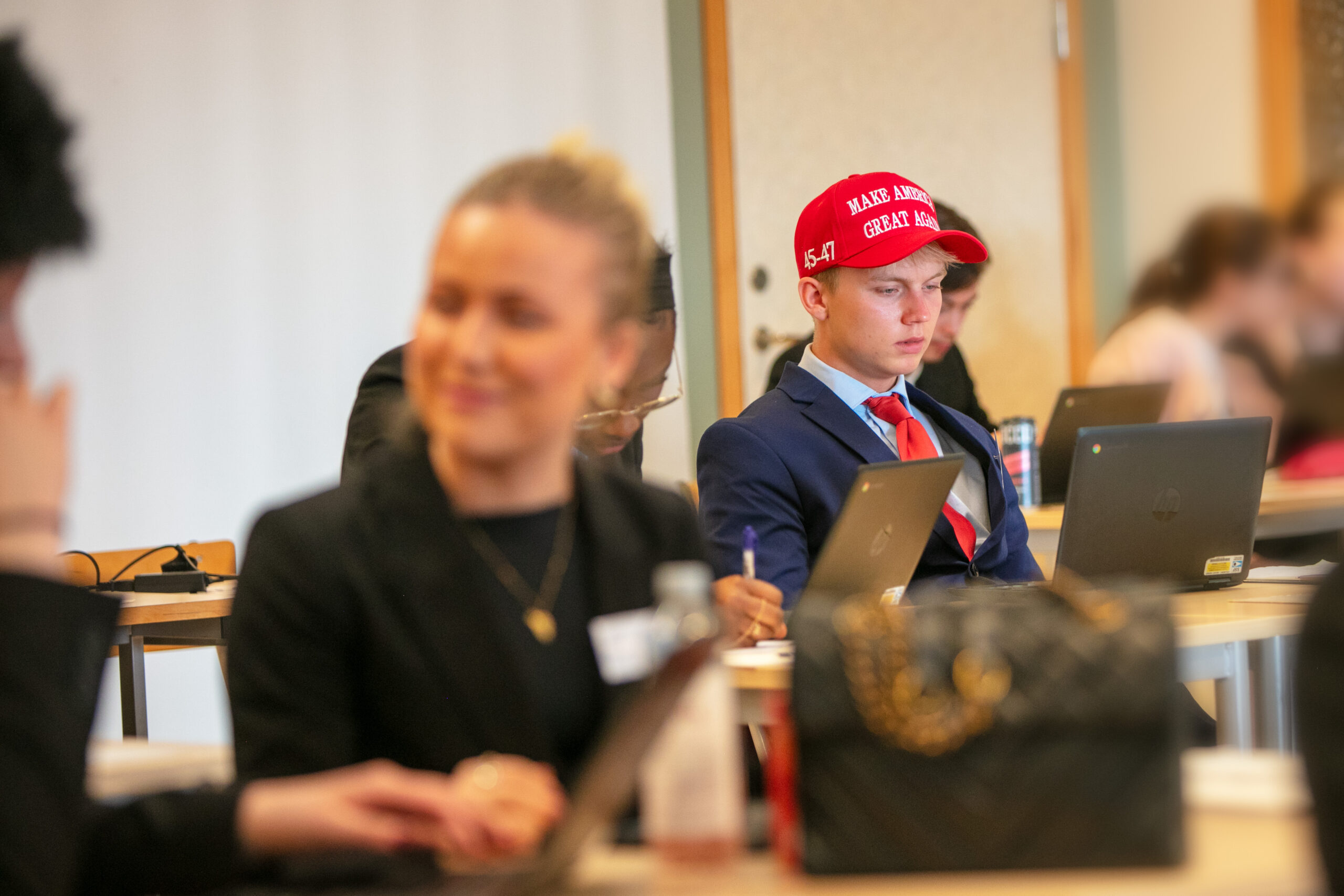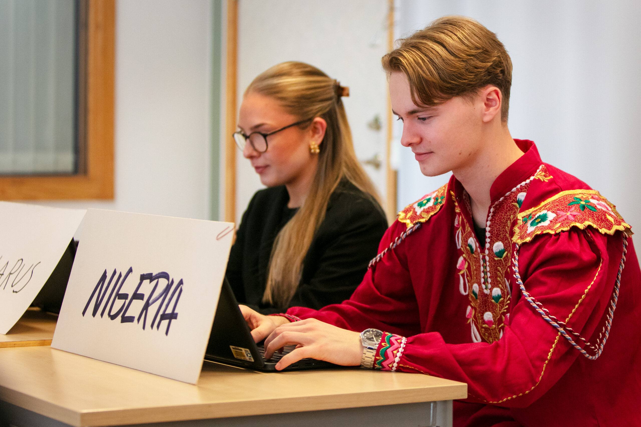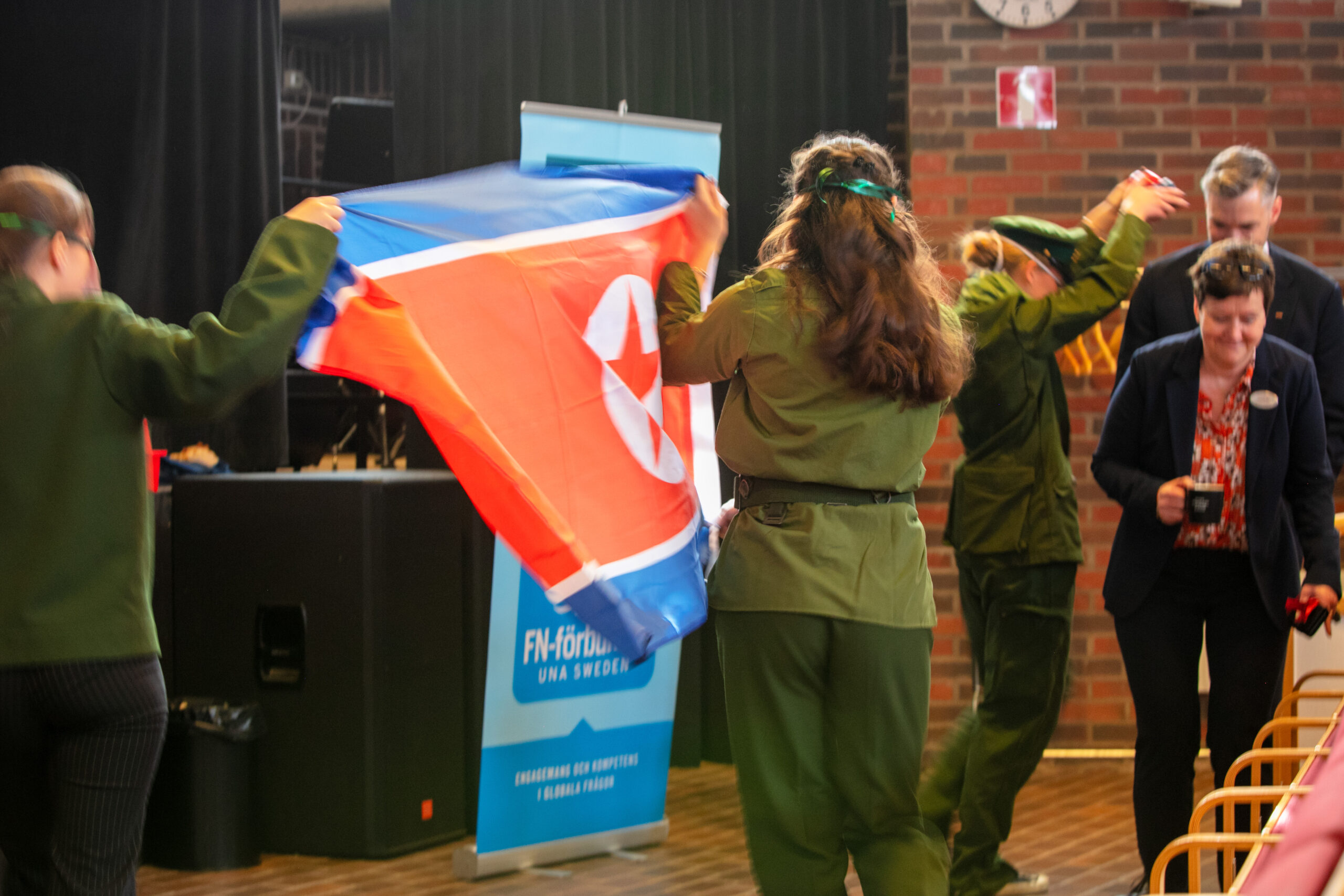 – Ju mer förberedd man är, desto säkrare känner man sig och desto roligare blir det, säger Sara och beskriver kvällarna under de tre dagar långa FN-rollspelet som ”helt galna”. Då gäller det att hitta argument för eller emot de förslag andra länder har lagt fram under dagen.